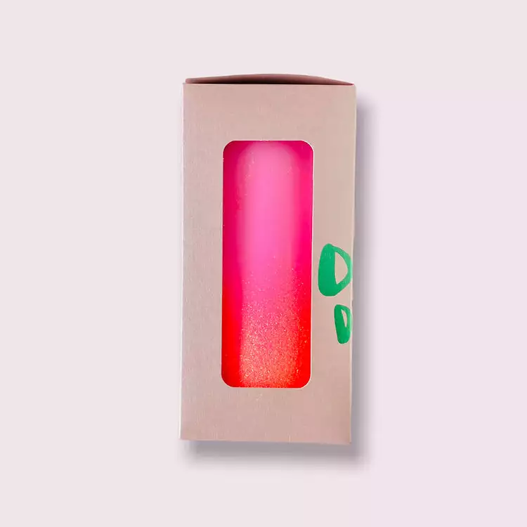 This boxed neon pillar candles will satisfy all your retro day glow dreams. Dip Dye Ombre tones with a glitter sparkle. A fun way to brighten up your table setting and a most unique, fun gift item.Â