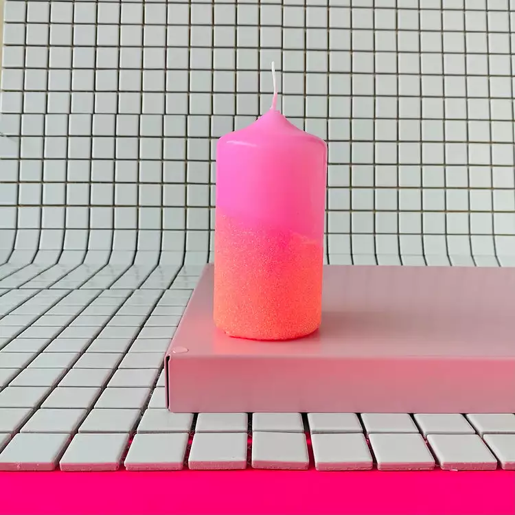 Pink Stories Neon Glitter Pillar Candle – Pink