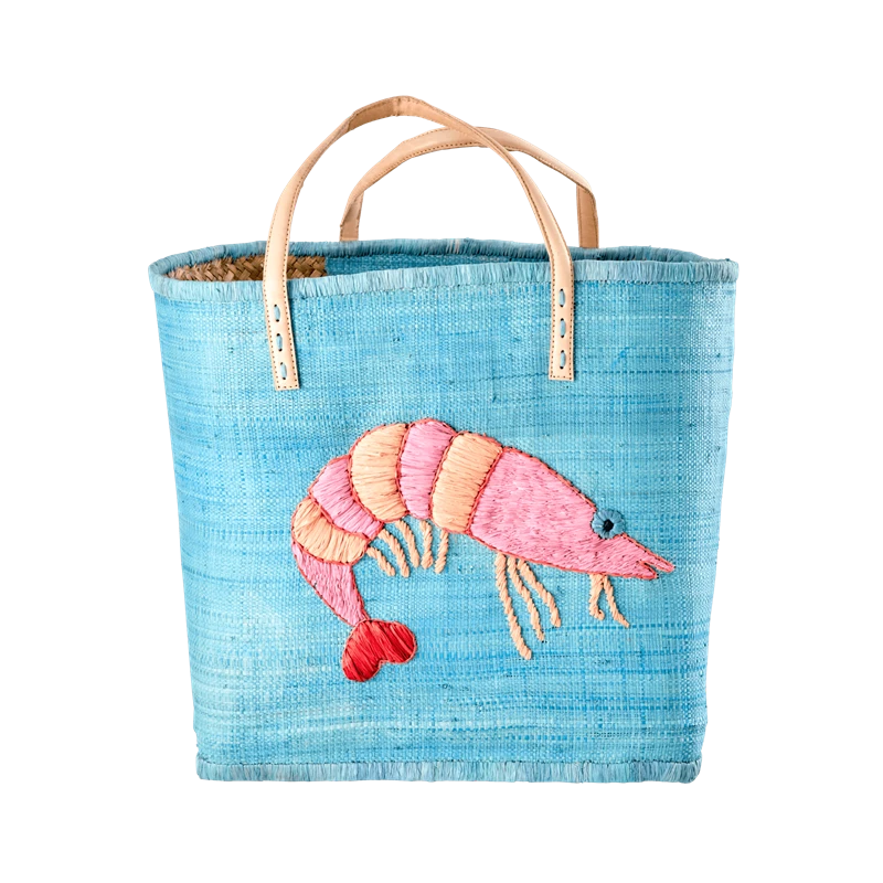 Gorgeous handmade raffia bag with an embroidered shrimp – large in size. The bag is spacious and fits many things… Can be used every day, picnics, on the beach, as a weekend bag or whatever the day has to offer. Perfect for a bottle ( or two ) of Rose .