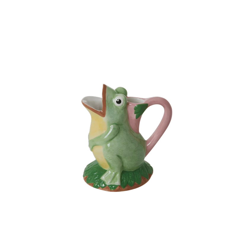 The sweetest little vase jug of a happy green frog. The vase is drawn by Charlotte Gueniau’s (RICE DK Creative Director and Co-founder) daugther, Selma Gueniau. Selma started with a drawing that has ended up being this beautiful and funky vase. we love practical things with a funky twist. This vase embodies exactly that. It will definitely make add some extra magic no matter where you place it. This is a vase, and not suitable for other liquids than water.