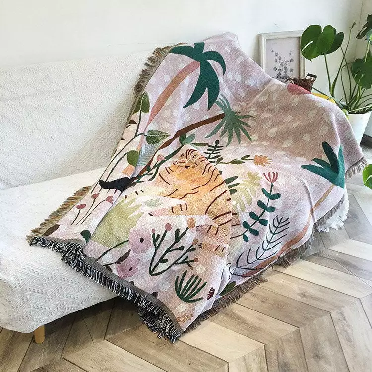 Presenting the Willow throw. A colourful and learned tiger, having a little rest in the peach sunset. Â
