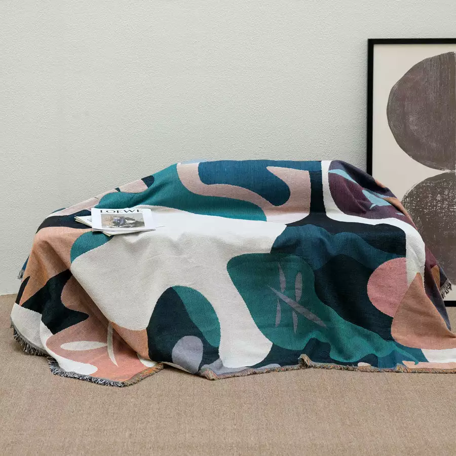 Presenting the Esme throw.  An abstract layered series of shapes and colours.