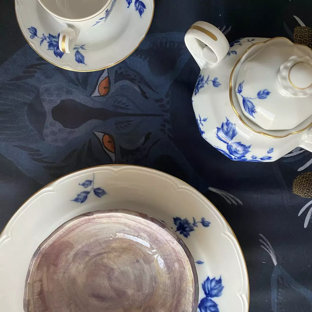 The design, framed within the Prado y Barrio chevron, centers around the Iberian Lynx, surrounded by elegant branches of pine, and chestnuts as a delicate background. It has been inspired in our family’s Christmas gatherings, where our grandma would decorate the house and table with pine branches that would impregnate the room with fragrance and colour; And thus, it has been thought as the perfect way to dress up your table for the most important and elegant moments.Â