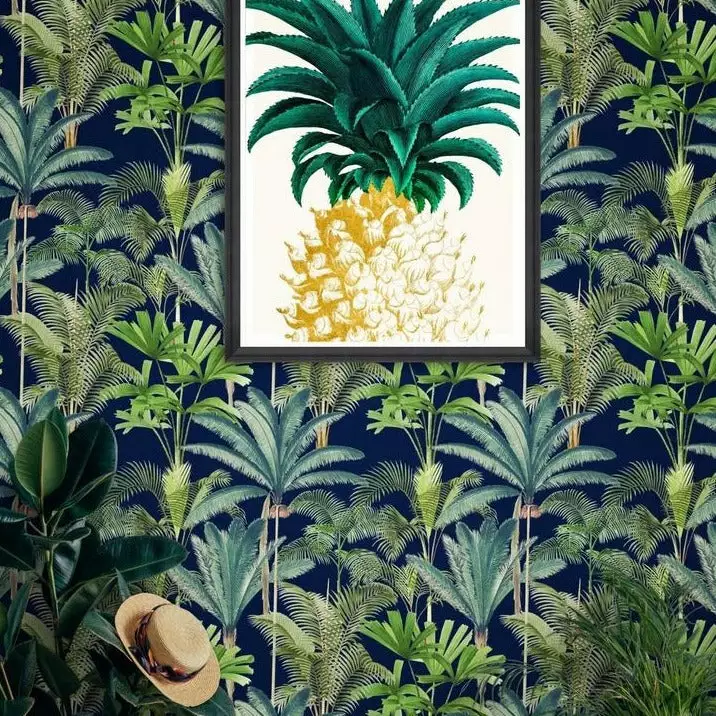 An exotic design, on a black background, with impressive palm trees, which creates a tropical atmosphere in any environment. Easy to put up with the paste the wall application and will enhance any room whether it is one wall or all. This wallpaper is digitally printed using eco-friendly inks. Also available in a lighter colour palette.Â