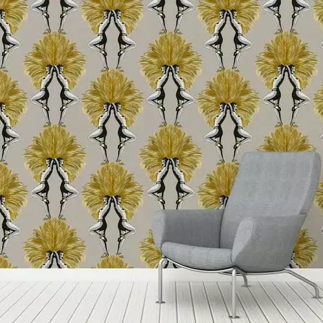 Showgirls Wallpaper Mustard & CreamÂ