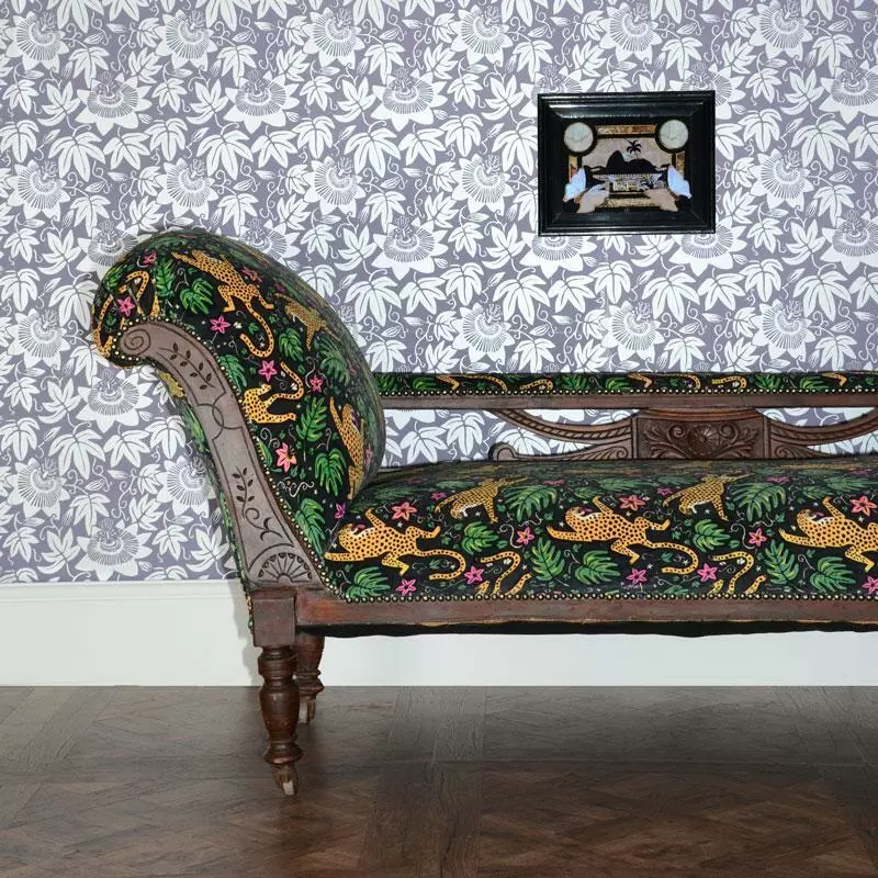 Working with artist Alexis Snell, a printmaker who works with beautifully unique linocuts to create Passion Flower wallpaper.
