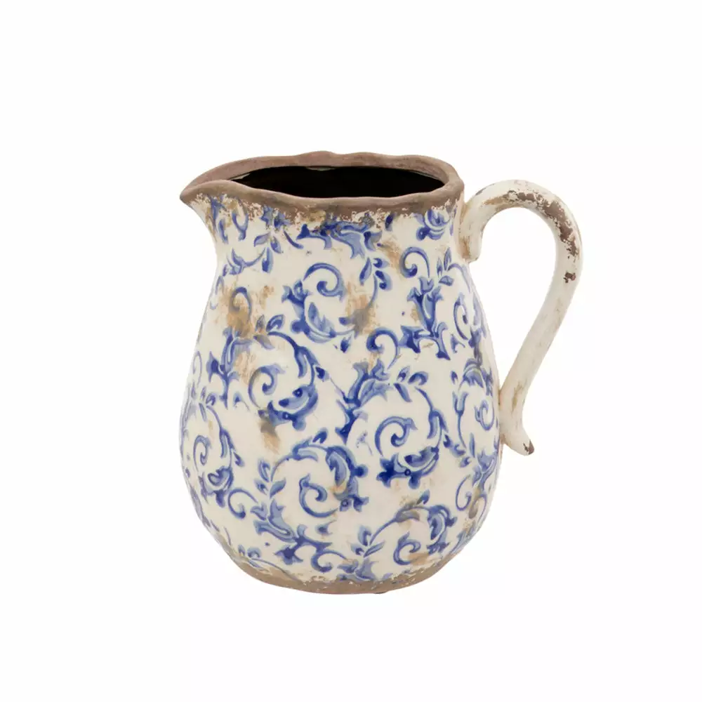 This floral patterned jug with a distressed finish and crackle glaze can be used to hold those freshly picked garden flowers, or to serve up that amazing homemade lemonade on a summers afternoon. Also available in green.