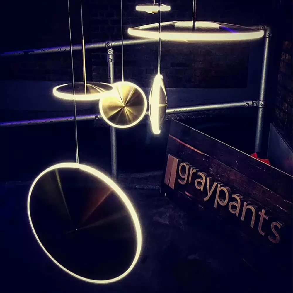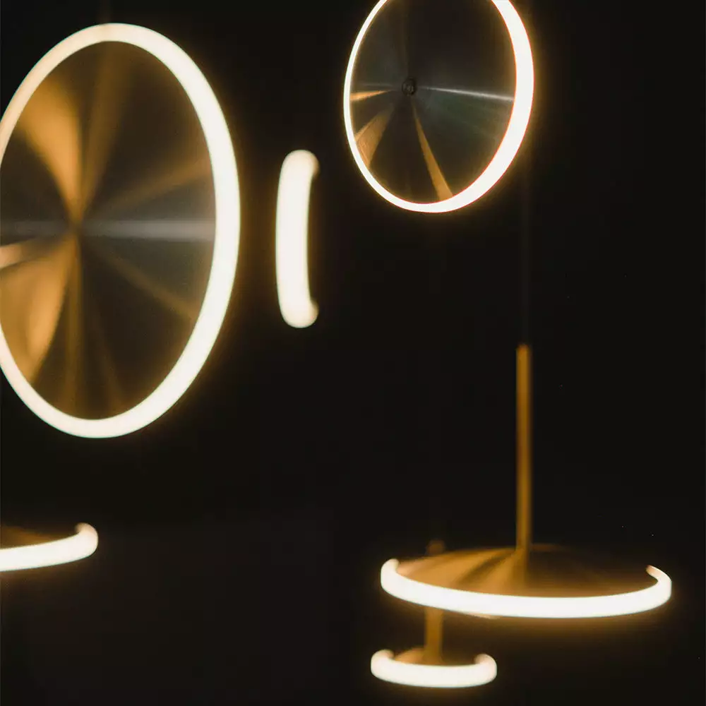 Mimicking the phosphorescent envelope found around the stars, Chrona lights create a luminous glow by combining spun brass and diffused acrylic. Available in brass or stainless steel with a variety of both horizontal and vertical orientations, dish pendants can be clustered together to create constellations or solo – as beautiful as a shooting star. Â